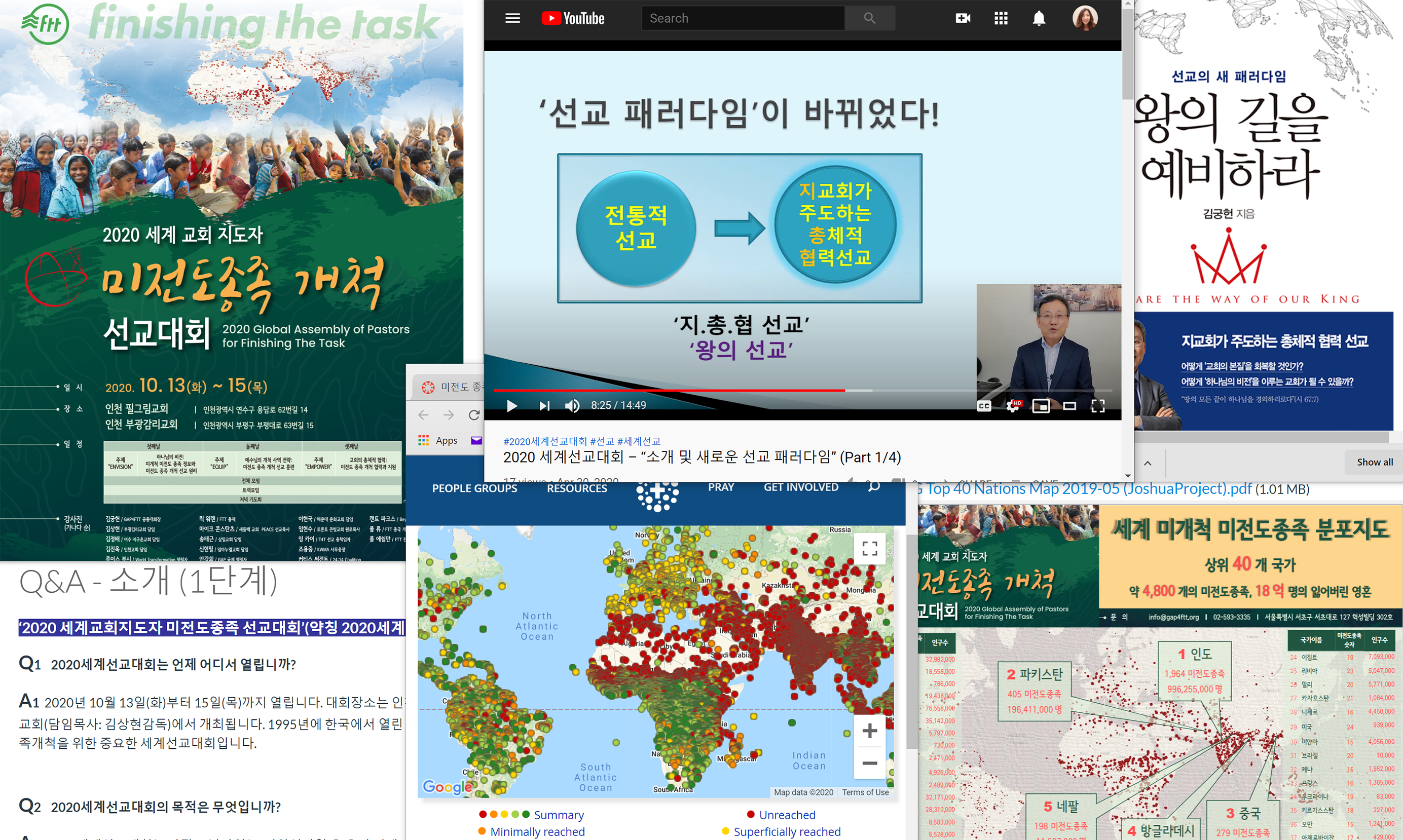 주님의 시간에 주님의 방식으로 우한코로나 사태가 종식되게 하소서. 백신과 치료제도 신속히 개발되게 하소서. 지금도 고통하는 영혼들을 치료하시고 택한 주의 백성들을 구원하소서. 세계 모든 교회들이 다시 문을 열고 하나님을 예배하는 날을 앞당겨 주소서. 2. 주님은 2020세계선교대회를 기뻐하십니다.